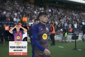直播吧10月19日讯 2025-26赛季西甲第9轮,巴萨2-1绝杀赫罗纳。佩德里首发出战,贡献1粒进球,赛后被评为全场最佳球员。