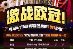 传足4/6场游戏特色奖期第25199期竞猜对象是本赛季欧洲冠军联赛的联赛阶段第三轮,具体对阵为:阿森纳VS马德里竞技、哥本哈根VS多特蒙德、勒沃库森VS巴黎圣日尔曼、纽卡斯尔联VS本菲卡、PSV埃因霍温VS那不勒斯和比利亚雷亚尔VS曼彻斯特城。