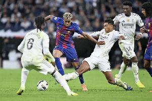 此前西甲第10轮进行的国家德比中,皇马主场2-1战胜巴萨。