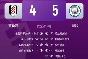 直播吧12月03日讯 英超第14轮,曼城5-4击败富勒姆,曼城一战丢4球,防守堪忧。