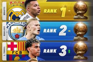 👀外媒更新2026金球奖排名:姆巴佩居首,亚马尔升第3,赖斯第5