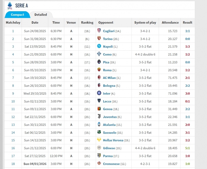 而佛罗伦萨在当前18轮过后已经积12分,暂列意甲积分榜倒数第二位。