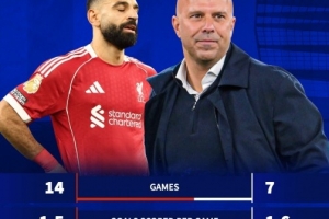 本赛季,萨拉赫共代表利物浦踢了14场英超比赛,球队场均进球数和丢球数均为1.5,场均积分为1.57分。在萨拉赫所缺阵的7场比赛里,利物浦场均打进1.6球,场均丢球数下降至1,场均积分上涨至1.86分。