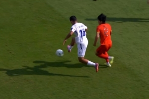 第90+3分钟,巴赫罗莫夫主罚任意球射门被李昊扑出,队友再补射也被李昊控制。↓