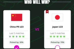 在亚足联官网的U23亚洲杯赛果预测页面,中国队在决赛中的支持率仅有30%,远不及卫冕冠军日本的70%。