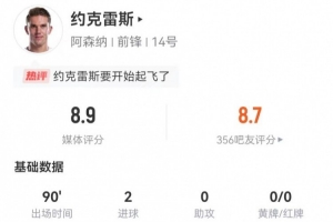 直播吧2月23日讯 阿森纳在本轮英超对阵热刺,约克雷斯本场数据如下: