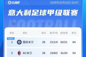 希望渺茫!积分榜:AC米兰遭近25轮首败,落后榜首国米10分!