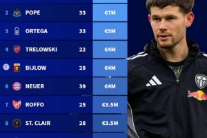 直播吧2月23日讯 德转列今夏合同到期十大门将身价,梅斯利耶1200万欧居首。
