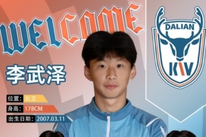 直播吧2月23日讯 中乙联赛球队大连可为官方宣布,球员李武泽正式加盟球队。李武泽出生于2007年,场上司职边后卫,曾在上海海港梯队效力。