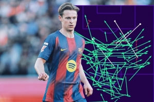 直播吧2月24日讯 西甲第25轮比赛,巴萨在诺坎普以3-0的比分完胜莱万特。本场比赛,弗兰基·德容首发出战表现抢眼。