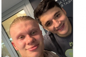 直播吧3月1日讯 曼城后卫胡桑诺夫生日在2月29日,队友哈兰德也在社媒晒出与胡桑诺夫的合照,配文写道:“祝你第5个生日快乐。”