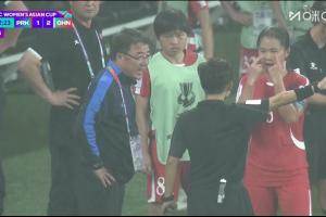 直播吧03月10日讯 中国女足在昨晚的亚洲杯小组赛中2-1逆转朝鲜女足,夺得小组第一。上半场补时阶段,裁判改判中国女足反超进球有效,朝鲜女足不满判罚一度拒绝比赛长达4分钟。