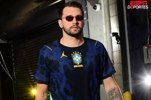 直播吧03月14日讯 ESPN晒照,湖人球星东契奇身穿巴西第二客场球衣。