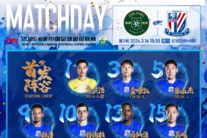 2026中超联赛第2轮 浙江俱乐部绿城vs上海申花 首发名单