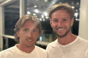 直播吧3月14日讯 已经退役的拉基蒂奇在米兰城参加了一场板式网球,完成了自己的跨界首秀,目前在米兰效力的前队友莫德里奇来到现场为他助阵,拉基蒂奇也接受了现场媒体的采访。