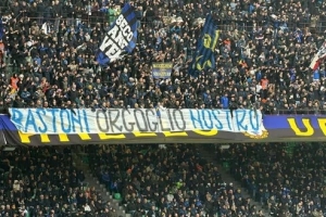 直播吧3月14日讯 在国米对阵亚特兰大的比赛中,国米球迷拉横幅支持近期深陷争议的巴斯托尼。