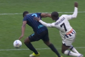 直播吧3月15日讯 在国米1-1战平亚特兰大的意甲联赛中,亚特兰大的进球引发了争议,邓弗里斯疑似被犯规在先,前裁判马雷利在DAZN节目上点评了这粒进球,并提到了弗拉泰西倒地没有吹点球。