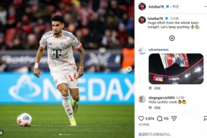 直播吧3月15日讯 德甲第26轮,拜仁1-1战平勒沃库森。赛后,拜仁边锋路易斯·迪亚斯在社交媒体发文,鼓励球队。