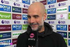 直播吧03月15日讯 本轮英超结束多场对阵,阿森纳2-0埃弗顿,曼城1-1西汉姆。赛后,瓜迪奥拉接受tnt sports采访。