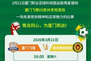 首轮比赛定于3月21日举行,厦门飞鹭将坐镇主场海沧体育中心于16:00迎战贵州贵阳竞技,3月19日10:26将开启售票!