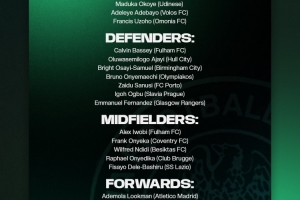 直播吧3月19日讯 为了迎接即将到来的国际比赛日,尼日利亚公布了新一期的国家队大名单,卢克曼、伊沃比、恩迪迪入选,奥斯梅恩缺席。
