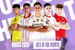直播吧3月19日讯 西甲官方公布联赛3月最佳U23球员候选,居莱尔、埃切维里等5名球员获提名。