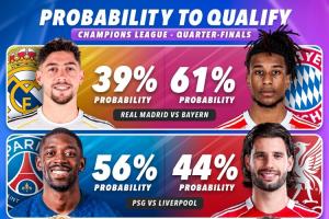 直播吧03月20日讯 外媒Score90列出了各队晋级四强的概率,拜仁、巴黎、巴萨、阿森纳拥有更高的晋级概率。詹俊发文也谈到了各队。
