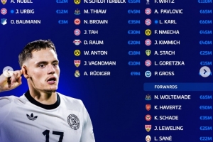 直播吧3月20日讯 近日,德转网站更新了新一期德国国家队球员身价,其中维尔茨以1.1亿欧身价高居首位,沃尔特马德、帕夫洛维奇以6500万欧位居次席。