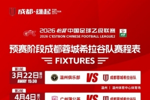 2026怡宝中乙联赛成都蓉城希拉谷队预赛阶段赛程出炉!