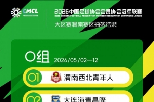 3月20日下午2点2026年中冠联赛大区赛抽签仪式,根据抽签结果,2026年中冠联赛大区赛阶段榆林漠北矿工落位渭南赛区,渭南赛区的比赛将于2026年5月2日正式开始。具体赛程待后续公布。