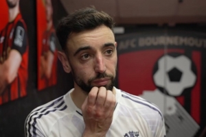 直播吧3月21日讯 英超第31轮,曼联客场2比2战平伯恩茅斯。赛后新闻发布会上,曼联中场B费接受了曼联官方媒体的采访。