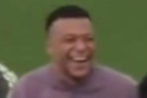 笑出表情包!姆巴佩赛前训练穿裆马斯坦托诺,大笑与维尼修斯握手