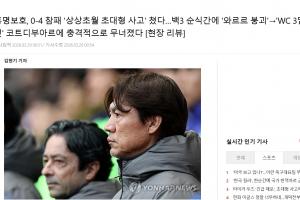 直播吧03月28日讯 在刚刚结束的友谊赛中,韩国0-4惨败科特迪瓦。韩媒xportsnews赛后第一时间发文,谈到韩国队的灾难表现。