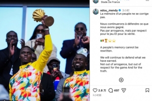 赛后曾效力过切尔西的塞内加尔门将爱德华·门迪更新社媒,晒出了自己手持非洲杯冠军奖杯的照片以及全队合影等,他用英法双语配文写道: