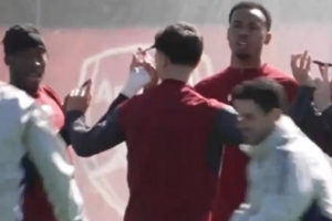 直播吧4月7日讯 据天空体育拍到的镜头,阿森纳今日的训练中整出了新活。