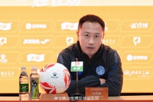 4月11日晚间,2026怡宝中国足球甲级联赛第4轮佛山南狮队赛前新闻发布会召开,主教练张池明携队员刘欢出席。
