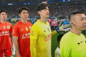 赛前列队时,颜骏凌用门将手套为一旁的小球童挡雨