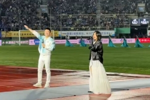 直播吧4月11日讯 据《新华日报》报道,4月11日晚,2026赛季江苏省城市足球联赛首轮比赛开始前,尚雯婕与汤非在扬州体育公园现场献唱扬州队队歌《马上成功》。