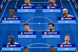 直播吧4月15日讯 德国转会市场根据拜仁和皇马现役球员的欧冠出场次数,排出了拜仁+皇马欧冠出场最多阵容。