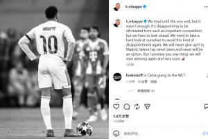 直播吧04月17日讯 皇马在欧冠1/4决赛被拜仁淘汰,姆巴佩赛后发表社媒表示遗憾并鼓舞球迷。