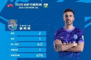 在2026怡宝中超联赛第6轮比赛中,天津津门虎客场对阵云南玉昆。基莱斯在第41分钟和第81分钟打入两球,并助攻队友破门,帮助天津津门虎在客场全取三分,当选为第6轮最佳球员。