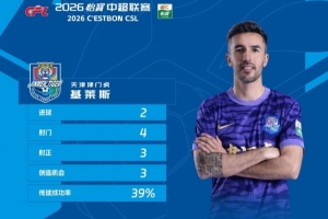 直播吧4月28日讯 今日,中超联赛官方公布了联赛第8轮的最佳球员,天津津门虎外援基莱斯当选。
