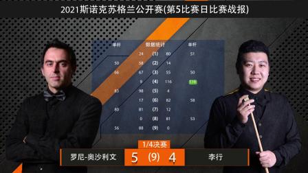 李行4-5不敌奥沙利文 无缘苏格兰公开赛四强