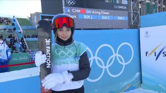 [谷爱凌兴奋] 第一次完成1620!谷爱凌突破自我激动难掩捂面蹲地