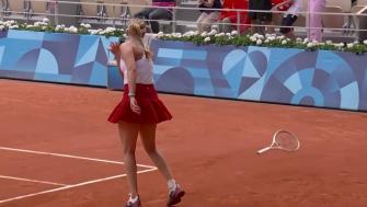 [对手破防] 郑钦文网前暴力高压带出破发点 维基奇暴怒摔拍