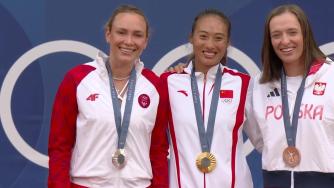 [颁奖仪式] 实至名归!新科奥运网球女单冠军郑钦文高举金牌