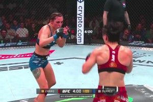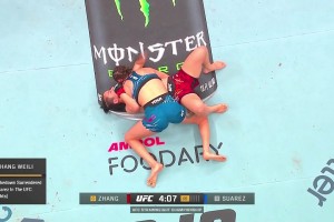 [张伟丽与对手缠斗] 十分激烈!张伟丽开场不久与对手在地面缠斗