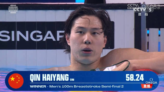 绝对实力!覃海洋58秒24轻松第一,晋级世锦赛男子100米蛙泳决赛