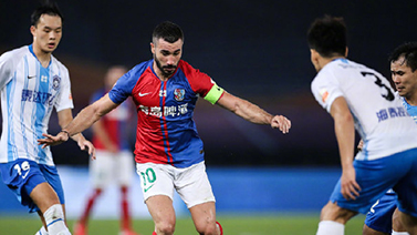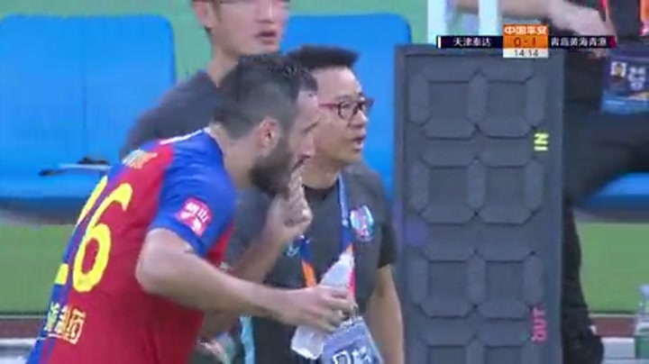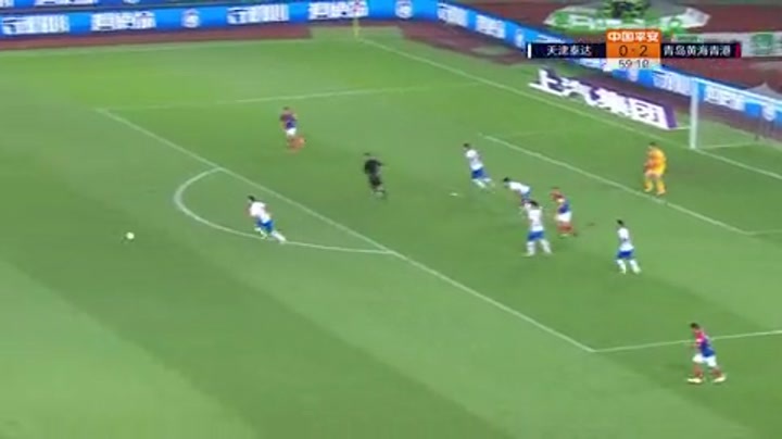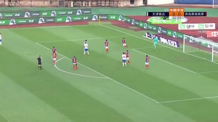 [射门挡出] 天津泰达发起长传进攻 惠家康外围射门被后卫挡出