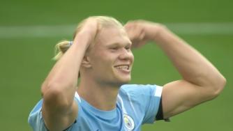 [进球视频]曼城领先!赖因德斯持球推进后挑传,刘易斯助攻哈兰德破门!